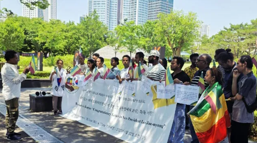 한옥커즈 공동설립자이자 공동대표인 베레켓은 한국에 거주하는 에티오피아인들과 함께 제21대 대한민국 대통령에게 보내는 축하 서한 캠페인을 조직하고, 6월 22일 대통령실 앞에서 기자회견을 열어 한국 정부가 에티오피아의 평화, 인권, 다원적 민주주의를 지지해 줄 것을 촉구했습니다. 에티오피아인들은 또한, 한국 내 난민과 망명 신청자들이 겪고 있는 복잡하고 불안정한 상황에 새 정부가 관심을 기울여 줄 것을 요청했습니다. 아울러 한국전쟁 당시 연대해 파병된 에티오피아 평화유지군을 기리기 위해, 매년 5월 6일을 공식적으로 ‘대한민국 에티오피아의 날’로 지정해 줄 것을 제안했습니다. 무더운 날씨에도 불구하고, 한옥커즈의 멤버 코난과 소켐도 현장에 함께하며 주한 에티오피아인 공동체의 목소리에 힘을 보탰습니다.