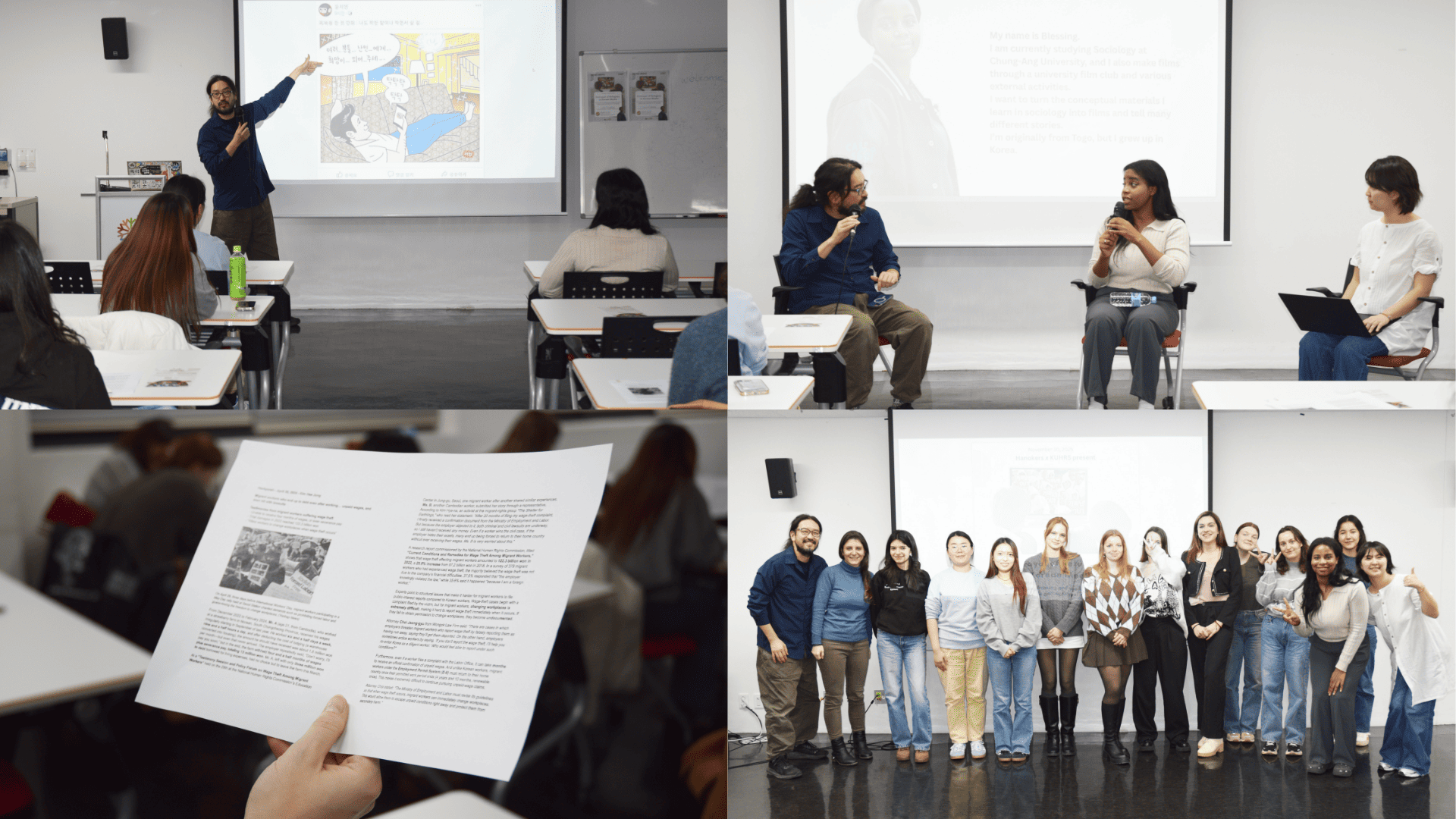 The Human Rights Society at Korea University (KUHRS), in collaboration with Hanokers, organized a special lecture titled "Portrayal of Refugees in Korean Media" at Seoul Startup Hub on November 10. Inviting students from Yonsei, Sogang, Hankuk, and Korea universities, the event explored how different media outlets strategically frame refugees and how this impacts policies and public perception in South Korea, followed by a talk with Yovo Blessing Grace, a young Togolese university student and filmmaker. The talk session provided a rare opportunity for Korean and international students to gain insight into the lived experience and perspective of a migrant youth with a refugee background.
