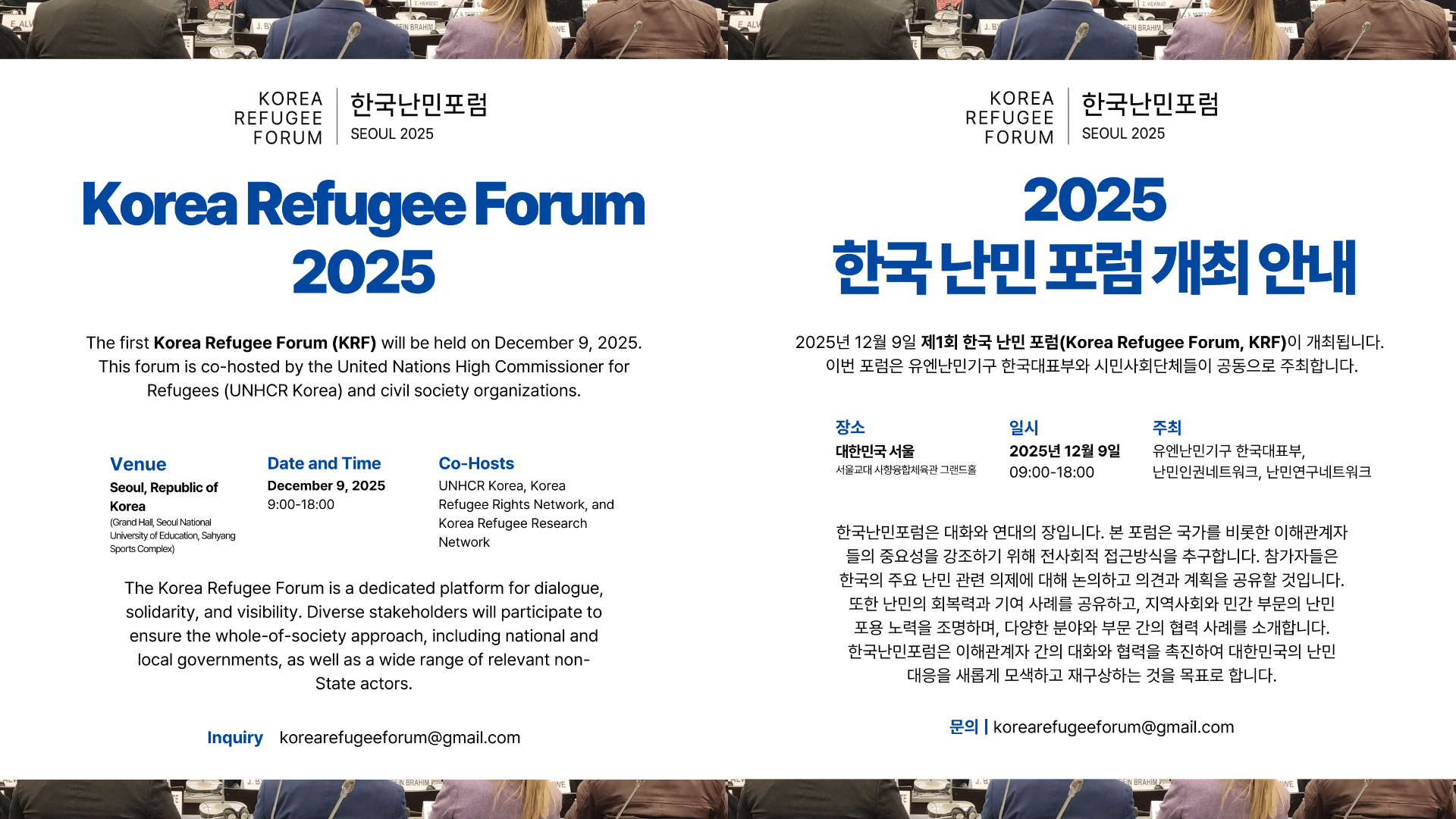 - 📅 (12/9) 2025 한국 난민 포럼 - 한국, 서울에서 첫 난민 포럼의 개최가 예정되다